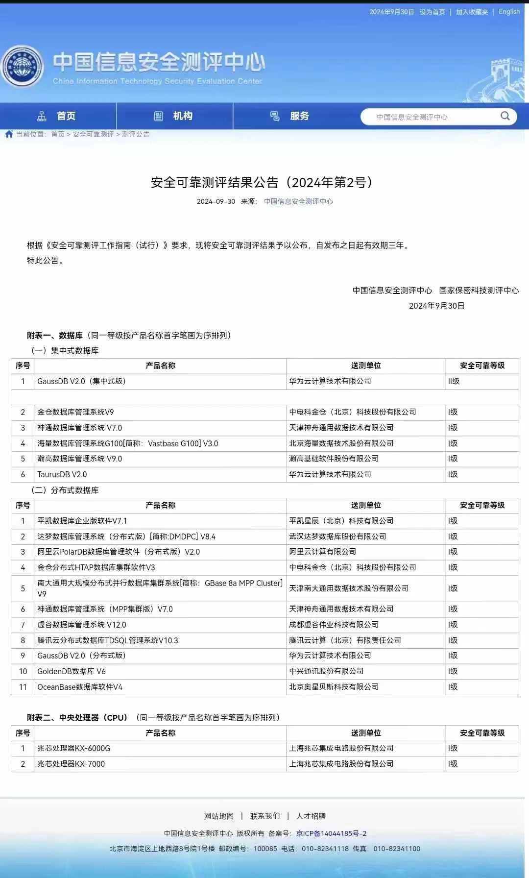9月30日,中國(guó)信息安全測(cè)評(píng)中心、國(guó)家保密科技測(cè)評(píng)中心發(fā)布了《安全可靠測(cè)評(píng)結(jié)果公告(2024年第2號(hào))》。神軟子公司神通公司的集中式數(shù)據(jù)庫(kù)產(chǎn)品神通數(shù)據(jù)庫(kù)管理系統(tǒng) V7.0、分布式數(shù)據(jù)庫(kù)產(chǎn)品神通數(shù)據(jù)庫(kù)管理系統(tǒng)(MPP集群版)V7.0通過(guò)測(cè)評(píng),獲得安全可靠等級(jí)“I級(jí)”。