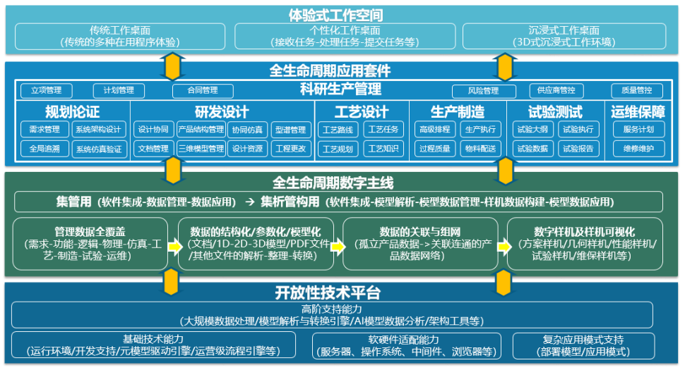 結(jié)合工程需求,甄選、評(píng)估工程所需的自主工業(yè)軟硬件生態(tài)伙伴,以PLM系統(tǒng)為牽引,聯(lián)合打造適合工程需要的構(gòu)件化、組合式應(yīng)用,并具備適應(yīng)業(yè)務(wù)變化的“快、靈”技術(shù)能力,支撐研制范式變革的動(dòng)態(tài)性、長(zhǎng)期性,為總體、分系統(tǒng)和配套單位提供實(shí)用、好用的個(gè)性化解決方案。