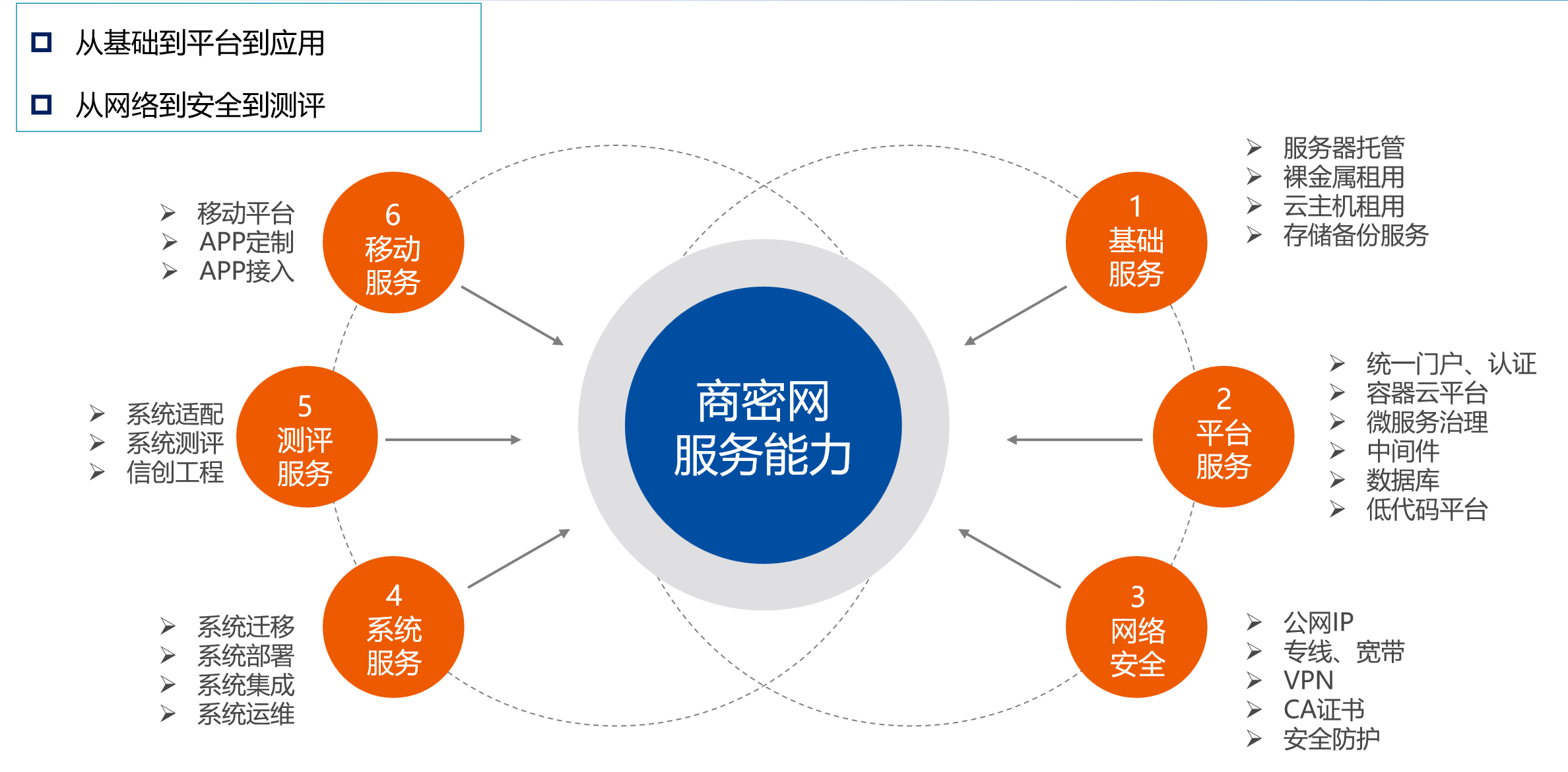 商密網(wǎng)云數(shù)據(jù)中心建設及服務理念,貼合集團型企業(yè)經(jīng)營管理、科研生產(chǎn)特點,實現(xiàn)全新信息技術與管控模式變革的深度融合,創(chuàng)新服務理念、優(yōu)化資源配置、增強安全防控、降低運營成本,不僅能夠提供基礎、網(wǎng)絡、安全、云平臺、中間件、數(shù)據(jù)庫等基礎服務,隨著生態(tài)體系的不斷完善,也能夠提供軟件服務。